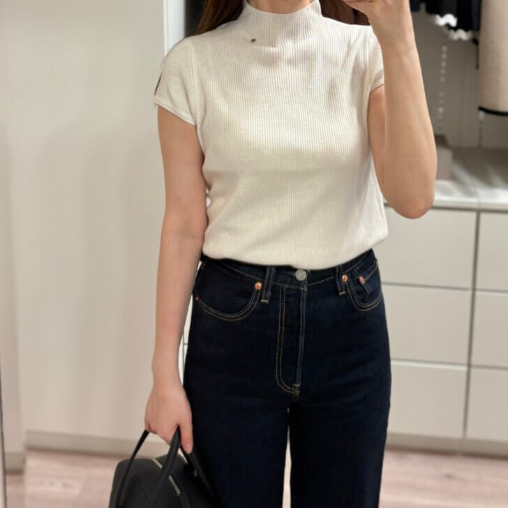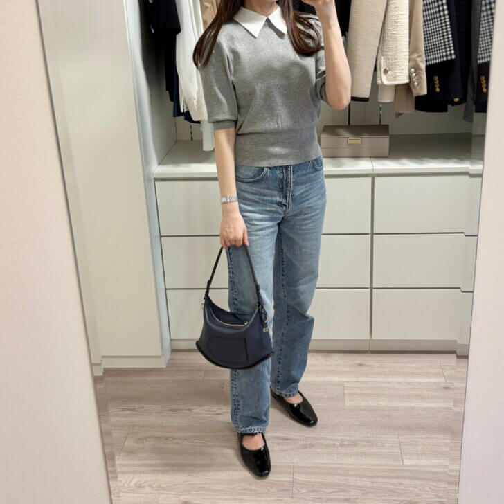 濃いデニムは色移りが心配だから、トップスすはなるべくプチプラにしようと思ってます。