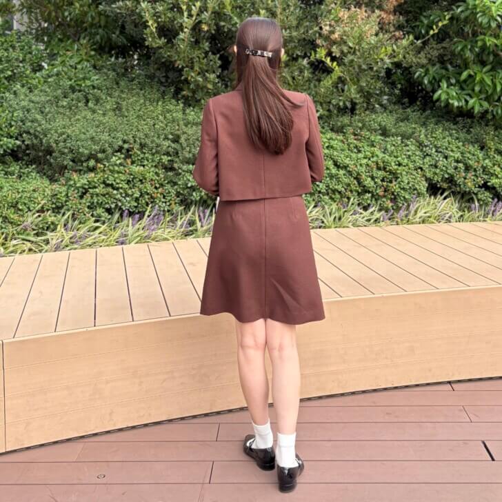 ジャケットのバランスに合わせて、スカートはかなりハイウエストになっています。