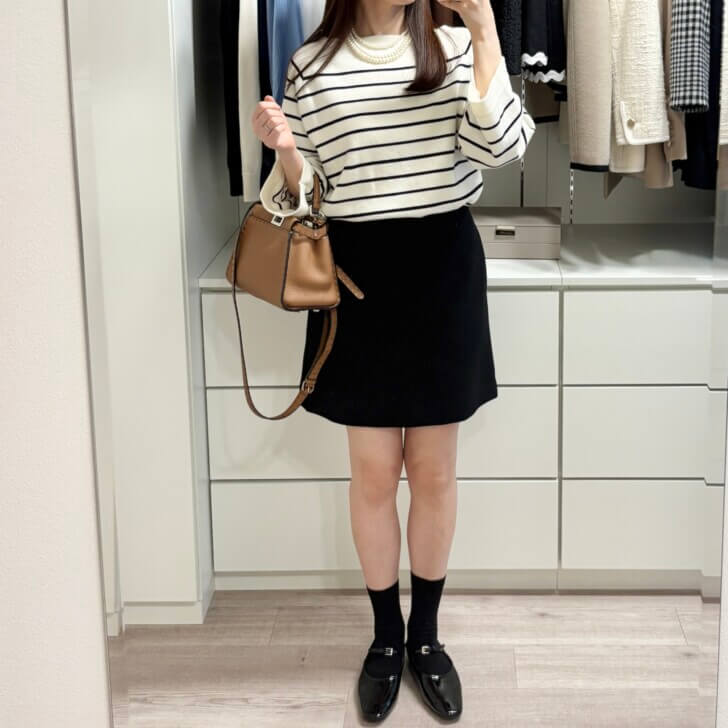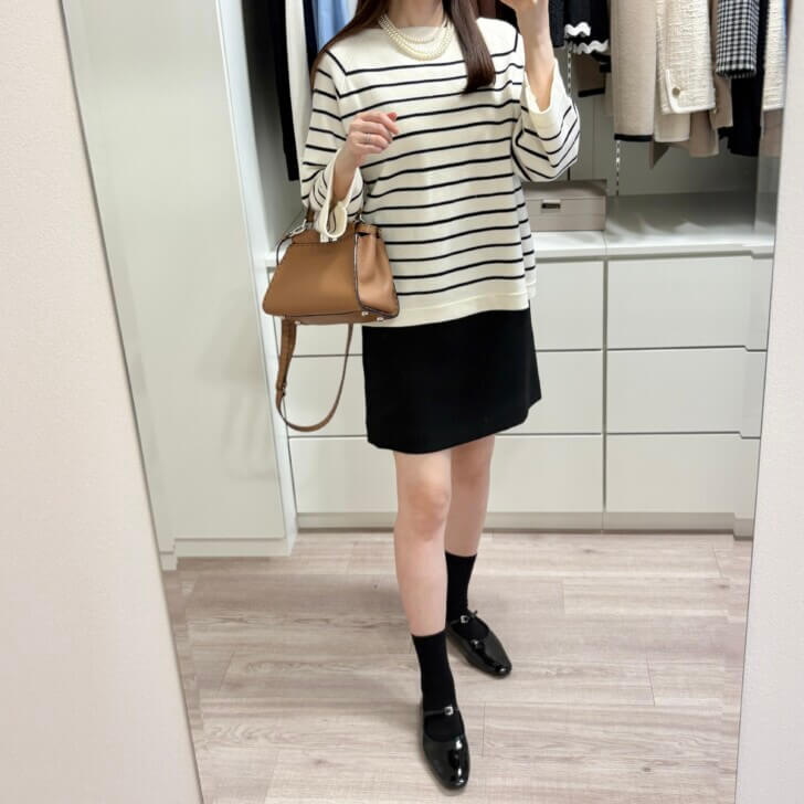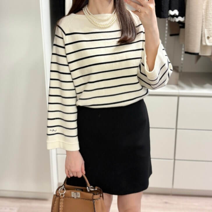 逆にボーダーが太いとカジュアルになるから、私はこれくらい細いのが好き。
