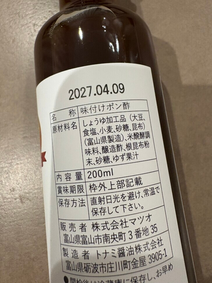 昆布は北海道、丸大豆醤油は富山県、ゆず果汁も国産です。