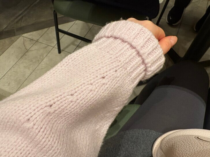 同じウールニットでもずしんと重たいものがあるけど、これは本当にふわっと軽いです。たくさん空気を含んでいる感じ。
