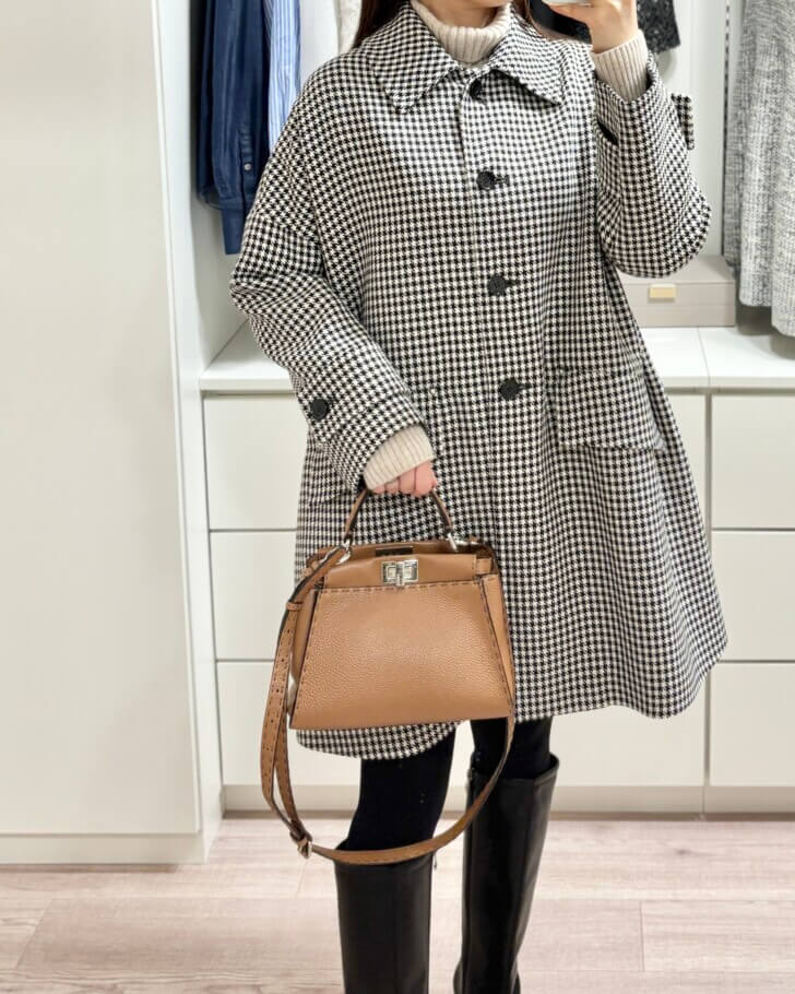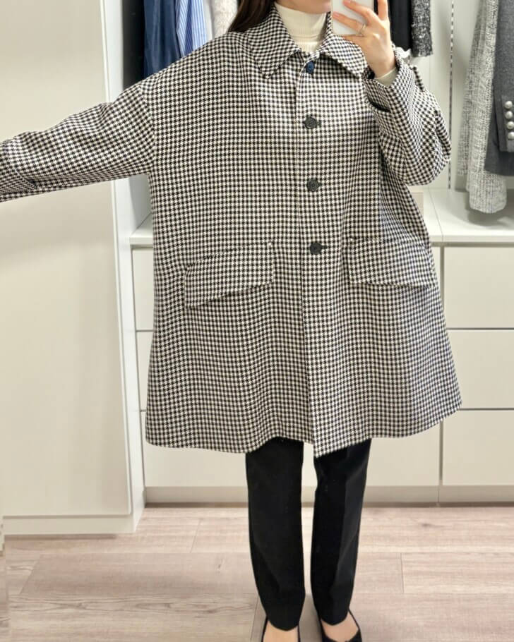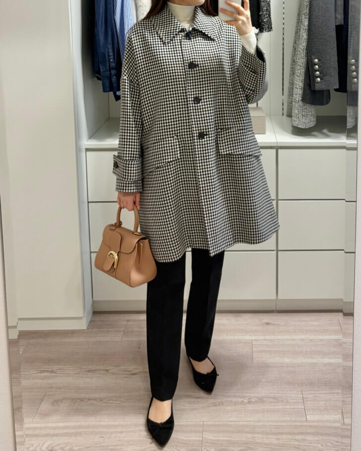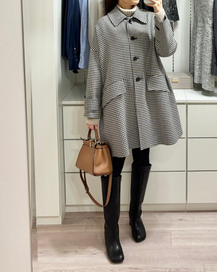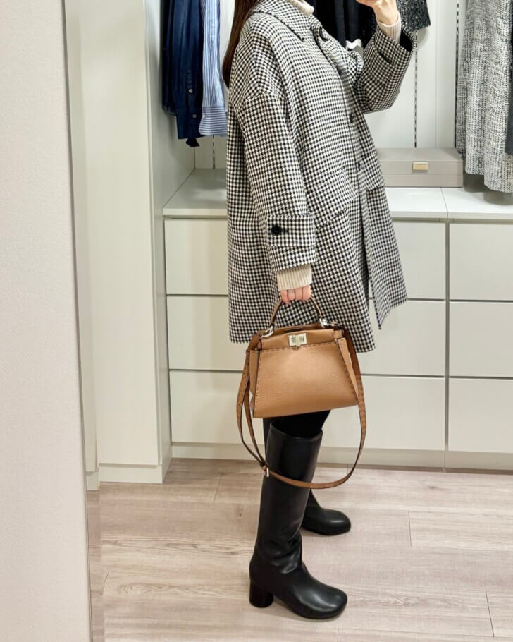 でもこの千鳥格子は着られている感じがなくて、シルエットが綺麗に出るので気に入っています!