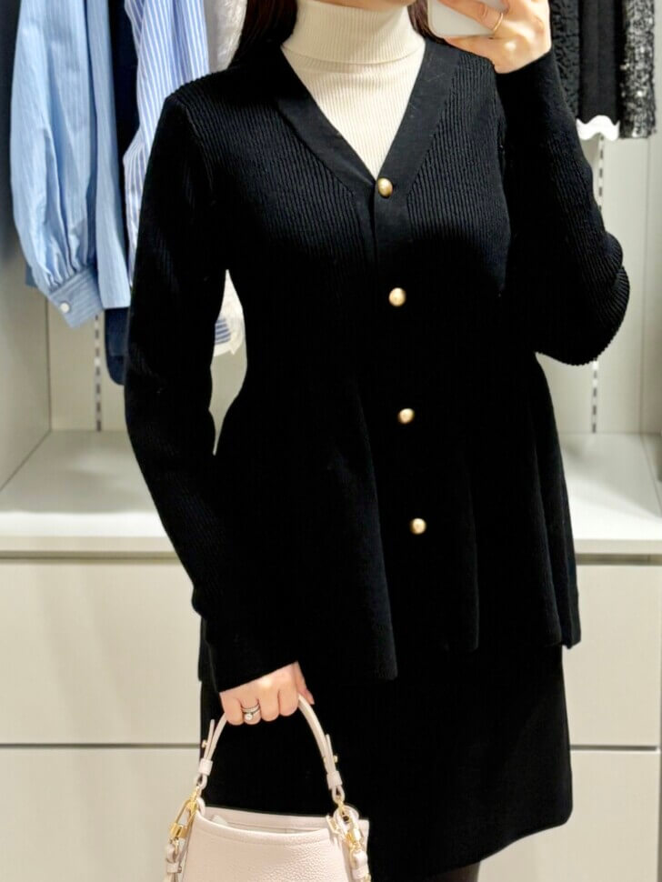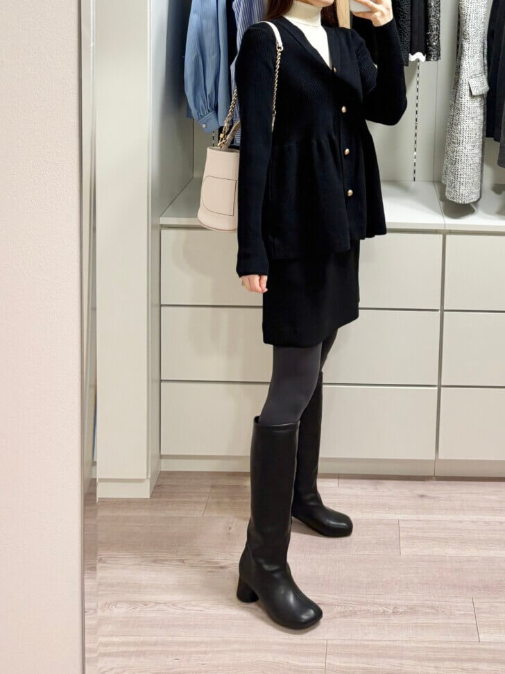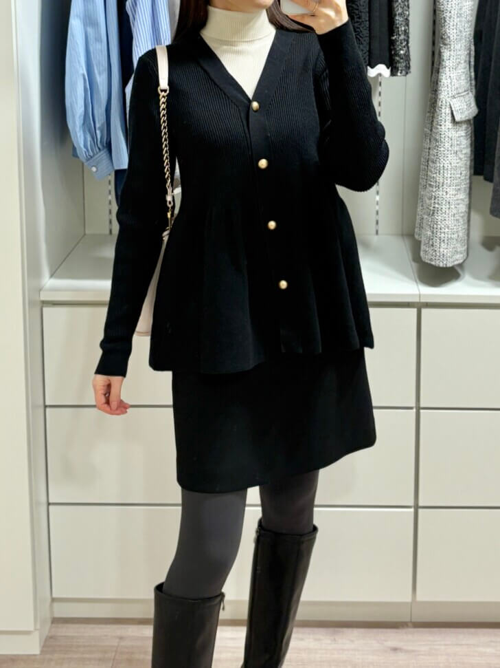 このカーディガンの着心地がとってもいいので、真冬も着れるように中にタートルネックを重ねてみました。