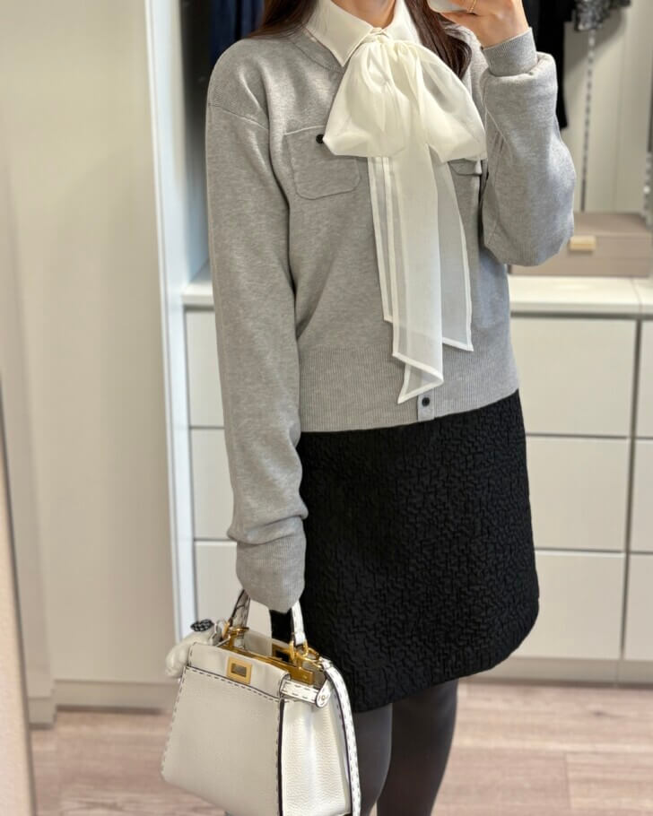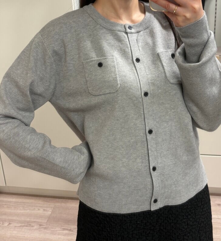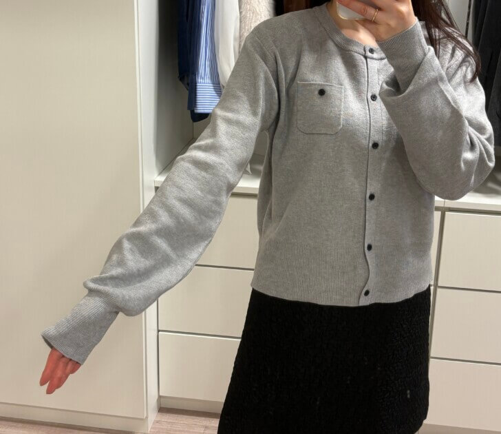 黒のボタンがアクセントで可愛いよね。ポケットの位置や形も似てる。