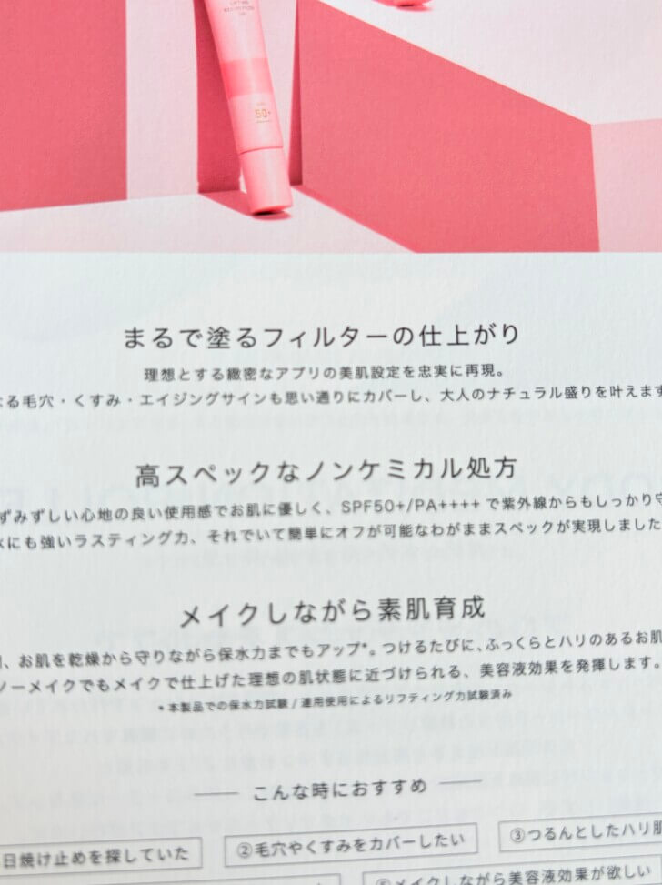 日本のブランドだし、ノンケミカルだし、紫外線カットもできるし、毛穴補正も強いし、最高です。