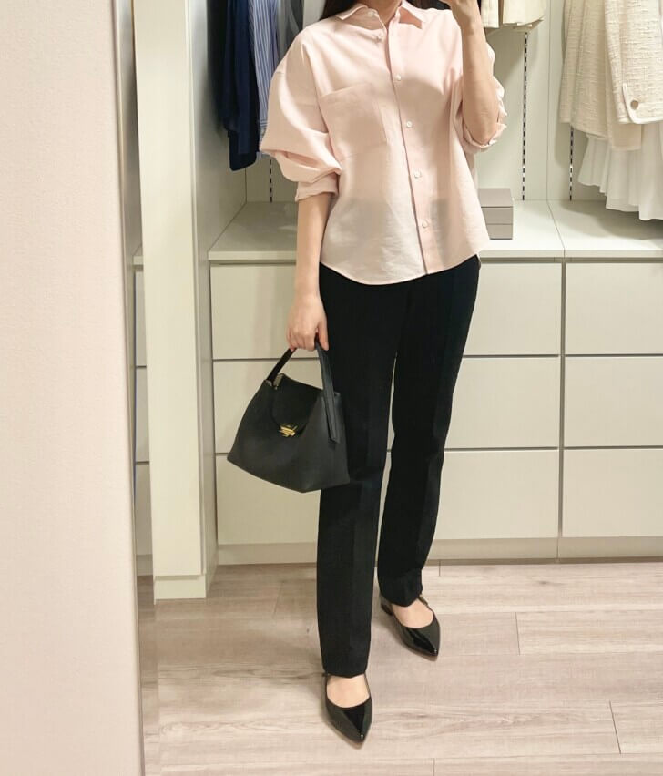 私はシャツのようなシャープな印象なものは似合わないんだけど、これは試着して一目惚れしました♡