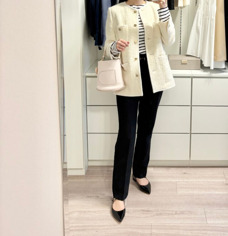 着丈短めのジャケットは昔から大好きで、私の体型にぴったりハマります。