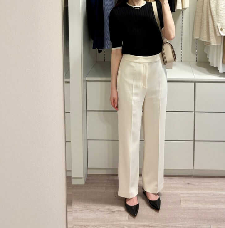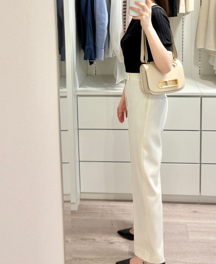 冬はミニスカ✖️タイツが定番だったけど、今の時期はスラックスを着る機会が増えます。