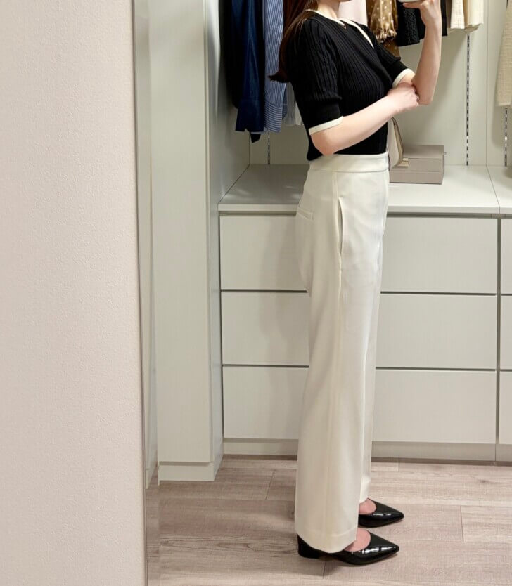 私はぜっったいに裾を床につけたくないので、フラットシューズを履くならあと1cm上げようかな〜、でも上げなくても大丈夫そうだな〜という感じ。