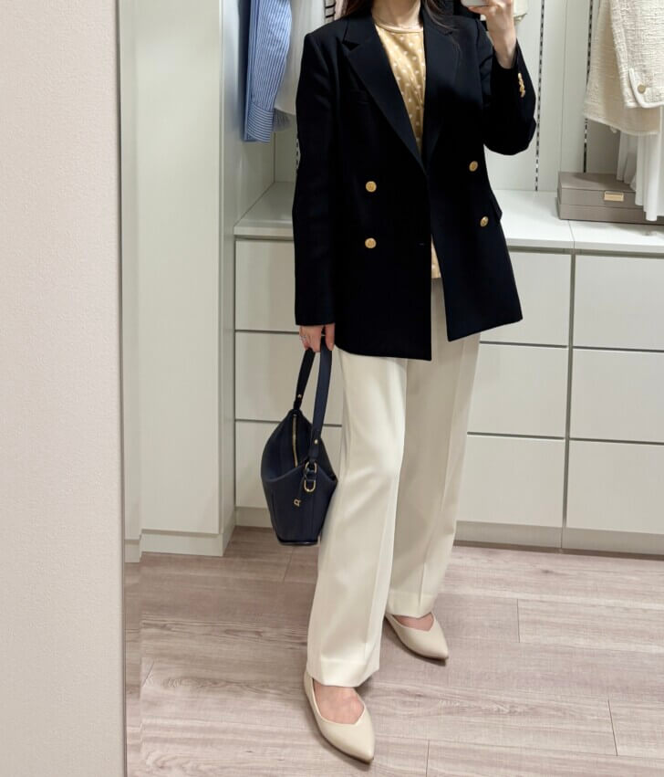 ネイビーというより黒に近い色だったし、3月は明るい色のアウターを着たくなるのでこちらに決定!