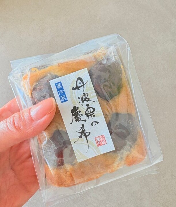 丹波栗の慶希:栗甘露煮(国内製造)、さつま芋ペースト、発酵バター、小麦粉、黒糖、卵、ブルーベリー、アーモンド粉、メープルシロップ、天日塩、レモン果汁/トレハロース、香料、着色料(クチナシ色素)(一部に卵・小麦粉・乳成分・アーモンドを含む)(卵、小麦、乳成分、アーモンド)